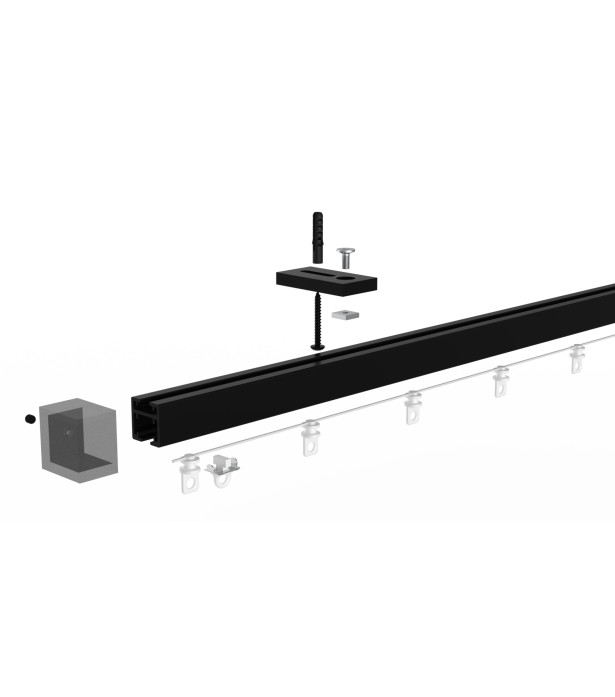 Kit de Tringle Rail Noir Mat Pour Rideaux effet Vague D20X20